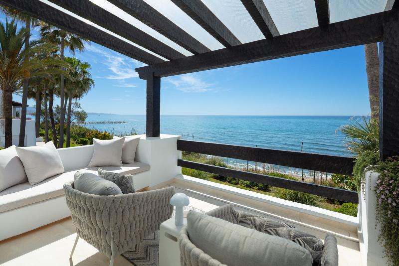 AusstattungDieses einzigartige Apartment befindet sich in den Persischen Gärten und verfügt über einen 24-Stunden-Sicherheitsdienst und einen Concierge-Service, der jeden Wunsch erfüllt. Umgeben von üppigen tropischen Gärten ist Penthouse One ein mediterranes Strandparadies mit echtem andalusischem Flair. Der nahtlose Übergang zwischen Innen- und Außenbereich sorgt für Entspannung im Stil eines Resorts, kombiniert mit einladenden Unterhaltungsräumen. Mit einer beeindruckenden Fläche von 454 m² und 211 m² Terrassen wurde jeder Raum mit natürlichen Elementen und raffinierten Möbeln auf höchstem Niveau ausgestattet. Dieses opulente Apartment am Strand erstreckt sich über zwei Etagen und verfügt über sechs Schlafzimmer mit eigenem Bad, wobei jeder Winkel des Anwesens sorgfältig gestaltet wurde. Dieses beeindruckende Apartment öffnet sich zu zwei Wohnbereichen, von denen einer mit einer großzügigen Bar ausgestattet ist, die sich perfekt für Unterhaltungszwecke eignet, und der andere ein Ort zum Entspannen auf luxuriösen Sitzgelegenheiten ist, wobei beide dem Stil des Hauses treu bleiben.Genießen Sie das mediterrane Wetter auf den großzügigen, lichtdurchfluteten Terrassen mit Außenkochbereich und Meeresrauschen. Die hochmoderne Küche verfügt über Gaggenau- und Miele-Geräte wie einen amerikanischen Kühl-/Gefrierschrank, einen integrierten Backofen und einen Weinkühler sowie reichlich Stauraum. Der Esstisch wurde perfekt integriert und ermöglicht es jedem Essenden, den unglaublichen Meerblick zu genießen. Die Immobilie verfügt außerdem über eine separate Waschküche mit Miele-Waschmaschine und -Trockner, einem überlaufenden Kühl-/Gefrierschrank und einer Butler-Spüle. Auf der Hauptwohnebene befinden sich vier geräumige Schlafzimmer mit Suiten, die mit viel Liebe zum Detail eingerichtet und so konzipiert wurden, dass sie das Beste aus ihrer Kapazität machen. Von den Schlafzimmern aus haben Sie einen Blick auf das Meer oder den atemberaubenden Berg La Concha. Mit dem privaten Aufzug oder über eine Treppe gelangen Sie in die großzügige Master-Suite, wo Sie ein Höchstmaß an Ruhe und einen unvergleichlichen Blick auf das Mittelmeer genießen können. Die luxuriöse Einrichtung schafft ein beruhigendes Ambiente, von der Minute an, in der Sie das Haus betreten, bis zu dem Moment, in dem Sie zum Rauschen der Wellen einschlummern. Mit seinen begehbaren Kleiderschränken und Bädern bietet dieser elegante Raum von majestätischen Proportionen eine exquisite Ausstattung und optimalen Komfort. Auf dieser Ebene finden Sie auch moderne 5-Sterne-Einrichtungen wie einen Fitnessraum mit Technogym, einen beheizten Pool mit Widerstandsschwimmgeräten und eine große Terrasse, auf der Sie den Sonnenaufgang und den Sonnenuntergang genießen können.